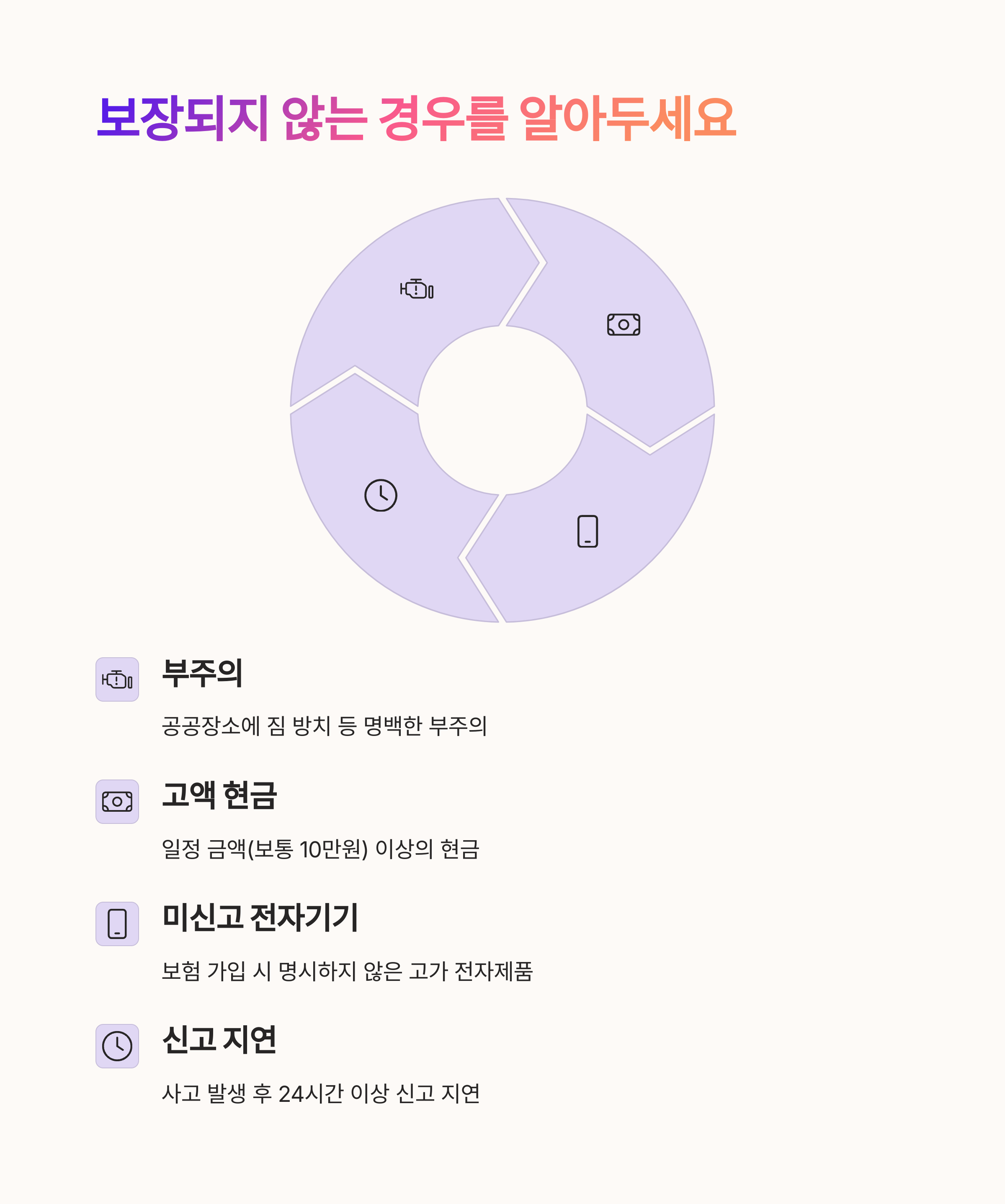 모든 피해가 보장되는 것은 아닙니다. 도난·분실 대비 여행자 보험에서도 제외되는 경우를 반드시 확인하세요.