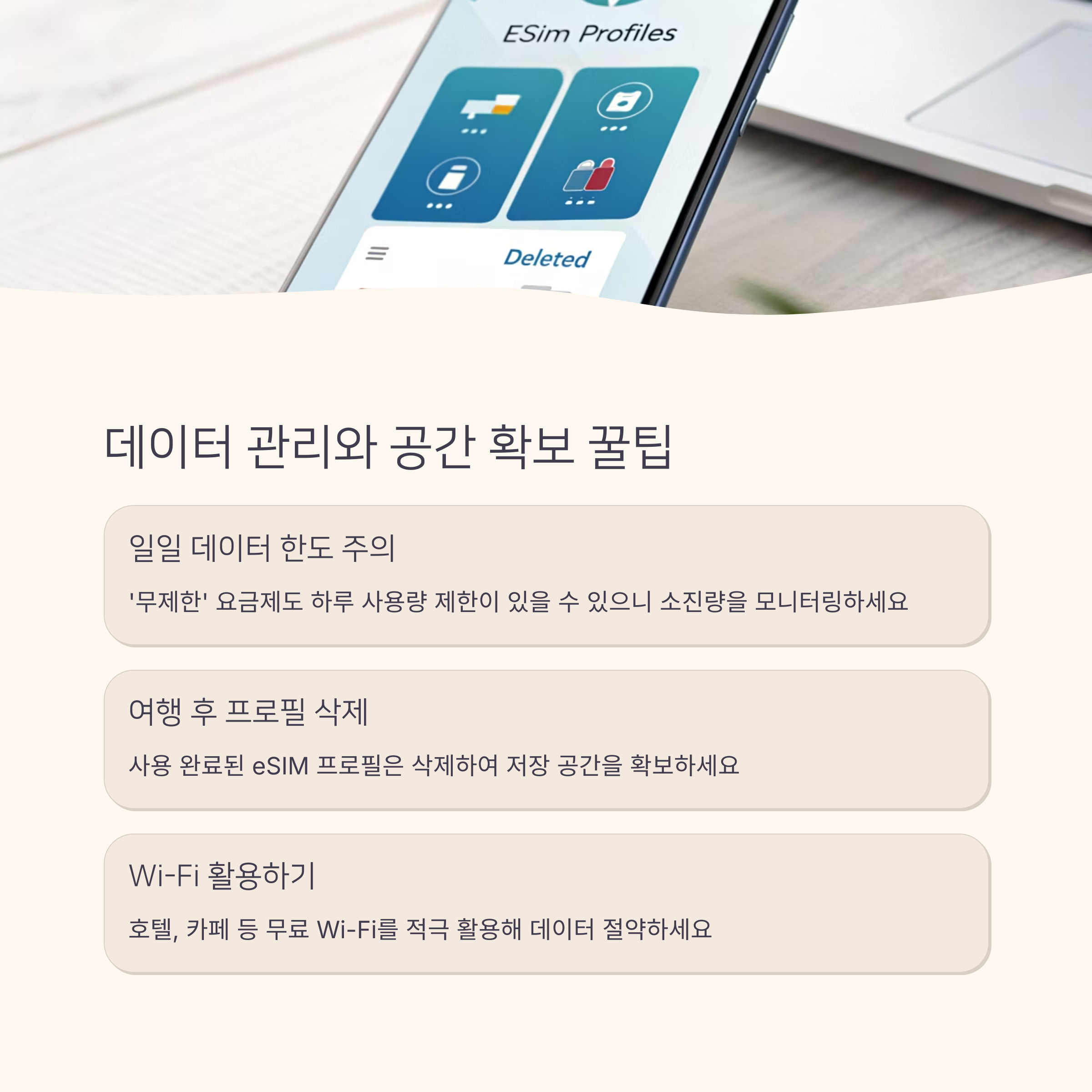 - ✅ 여행 후 eSIM 삭제로 저장 공간 확보 필요