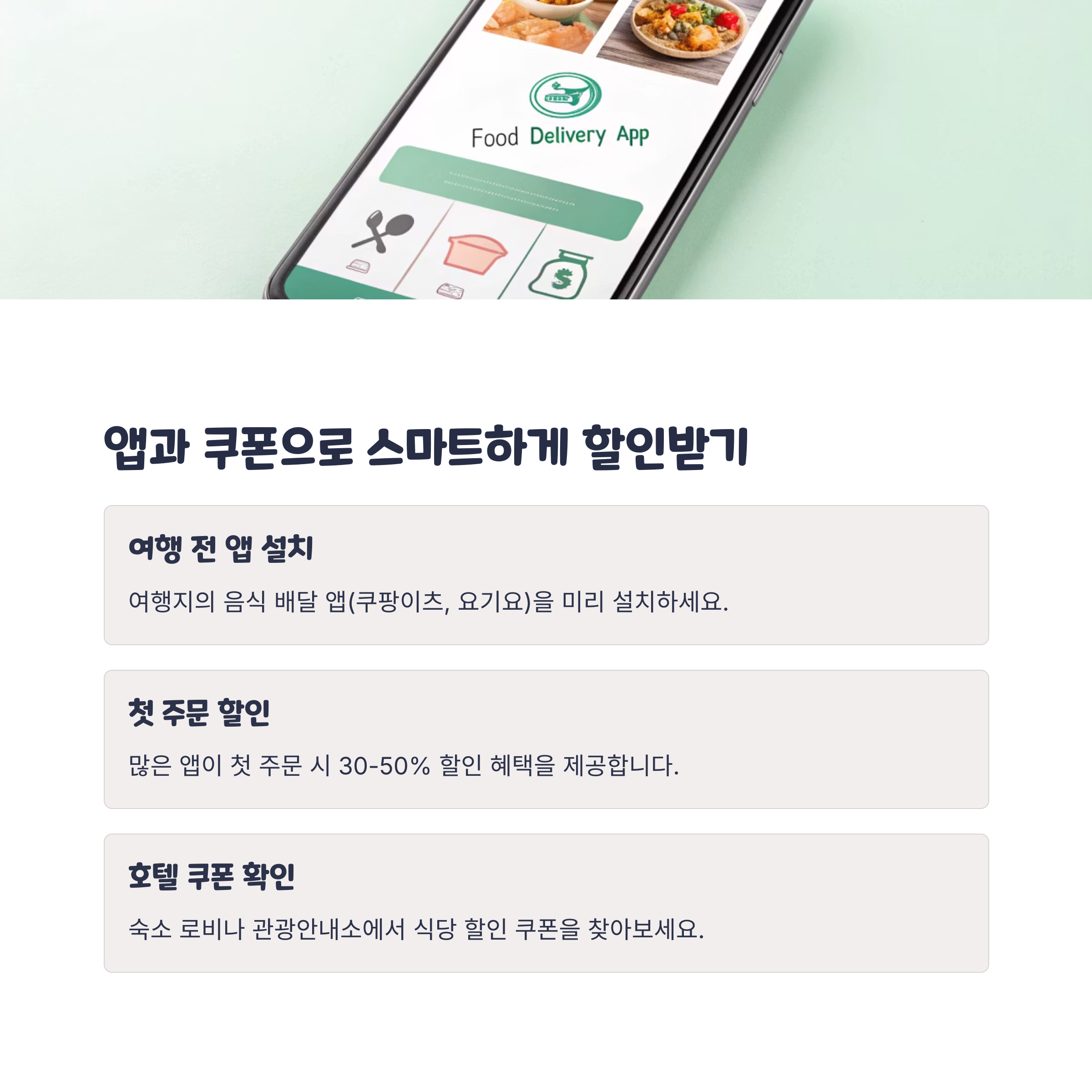 여행자 할인 앱과 푸드 쿠폰을 활용하세요
